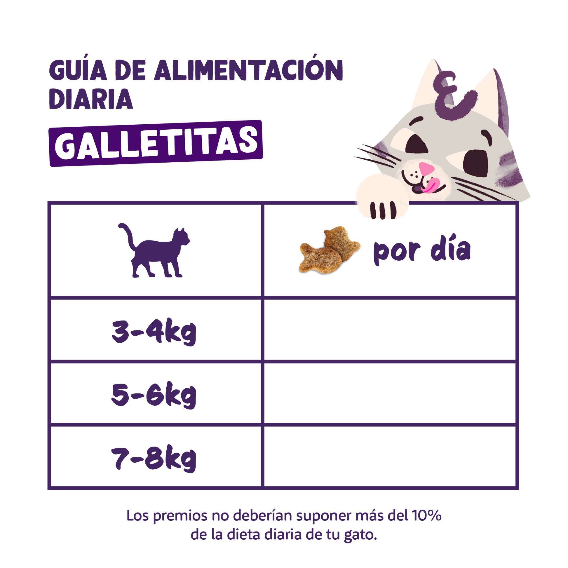 Di adiós al aburrimiento con nuestras deliciosas Galletas. Combínalas con sus juegos interactivos para mantener su mente felina alerta y entretenida.