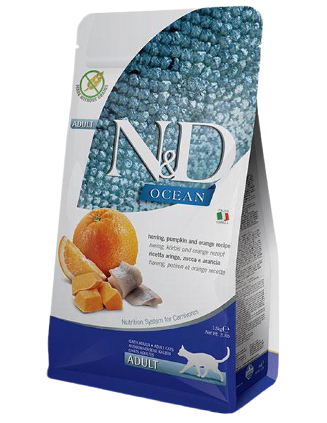 N&D Ocean feline de arenque, calabaza y naranja es el nuevo pienso seco completo ideal para gatos de todas las edades.