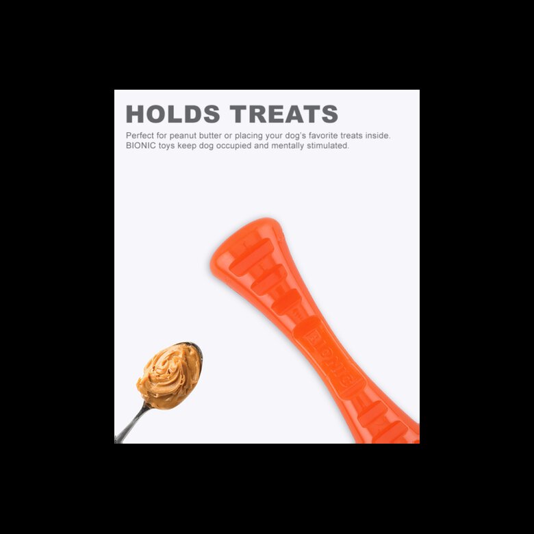 Los productos BIONIC están fabricados con Goma BIONIC patentada y muy duradera, y están diseñados en EE.UU. con calidad garantizada. La GOMA BIONIC está formulada sin sustancias que no quieres que tu perro muerda, como BPA, plomo y ftalatos, y su durabilidad ha sido probada por un laboratorio estadounidense acreditado por las normas internacionales ISO/IEC y NADCAP.