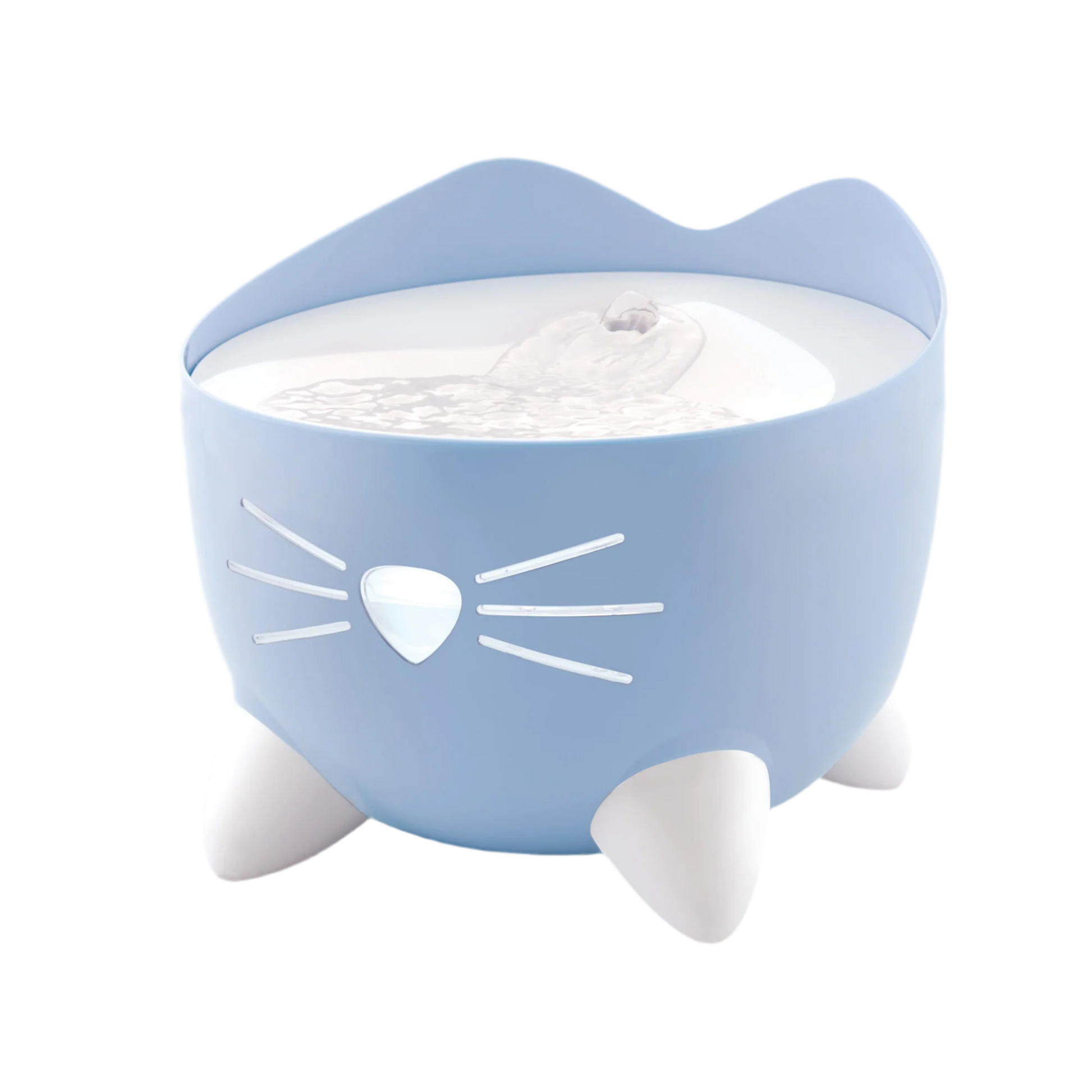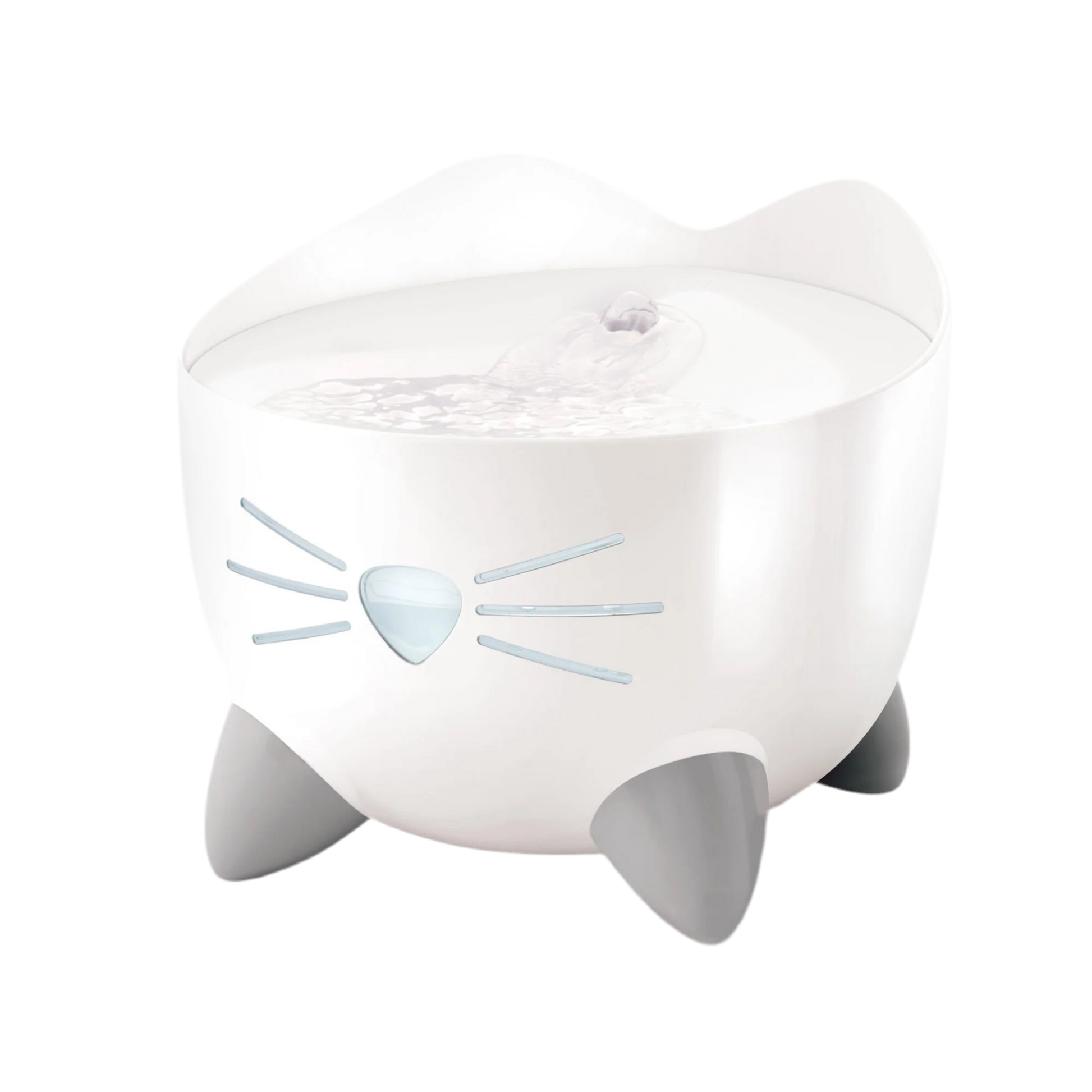 La Fuente para Gatos Catit PIXI tiene una apariencia sorprendentemente felina, y a la vez es muy ergonómica y fácil de usar. Las pequeñas patas de PIXI hacen que la fuente sea fácil de levantar para rellenarla, mientras que las lindas orejas ayudan a prevenir derrames de agua y salpicaduras. Incluso la nariz y los bigotes de PIXI son muy prácticos ya que sirven como una ventana retroiluminada del nivel de agua.