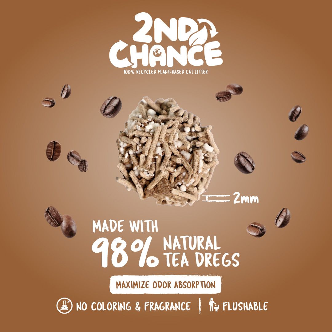 La Arena 2nd Chance es una opción revolucionaria para el cuidado de tu gato, formulada con ingredientes reciclados y naturales como café, té verde, té negro, cáscara de guisante, fibra de guisante y perlas de yuca. 🌿 Esta arena está diseñada para ofrecer un control superior de olores, una aglomeración excepcional y una gran absorción, todo mientras respeta el medio ambiente. 🌍