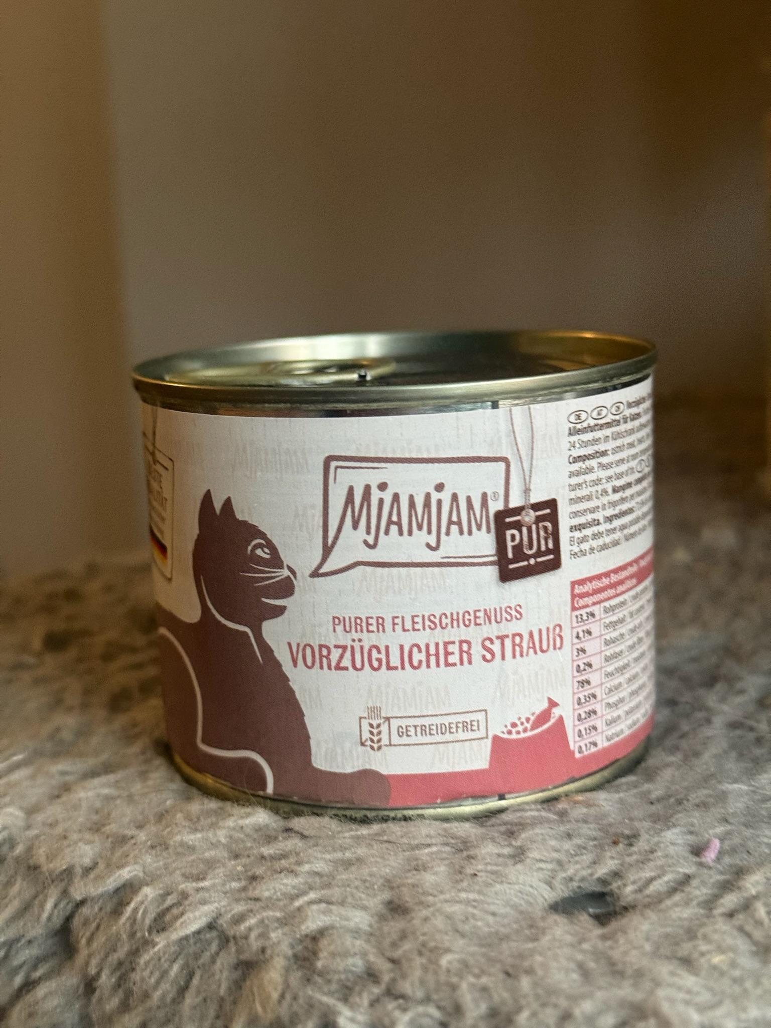 Dale a tu felino el placer de una alimentación natural y equilibrada con MjAMjAM Avestruz Puro 🐱✨