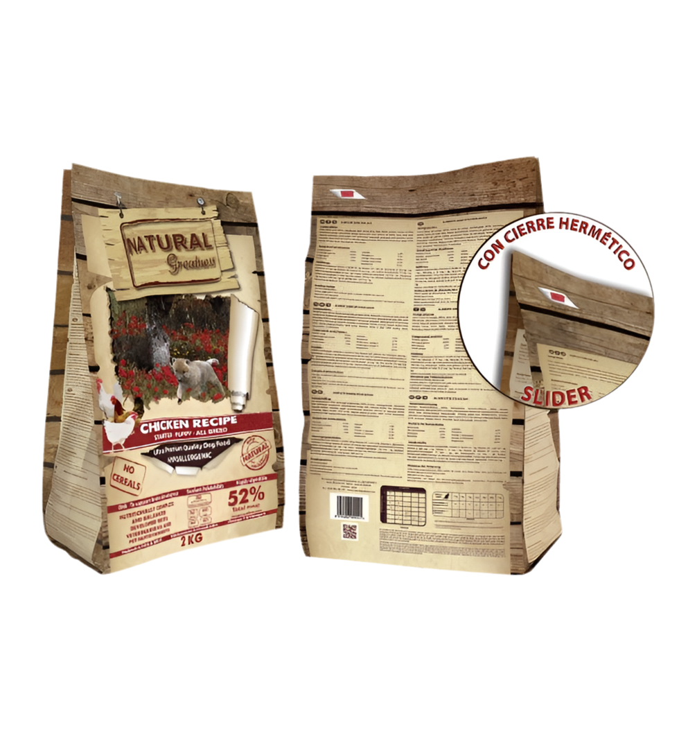 Natural Greatness Puppy Starter es una receta hipoalergénica formulada sin cereales.